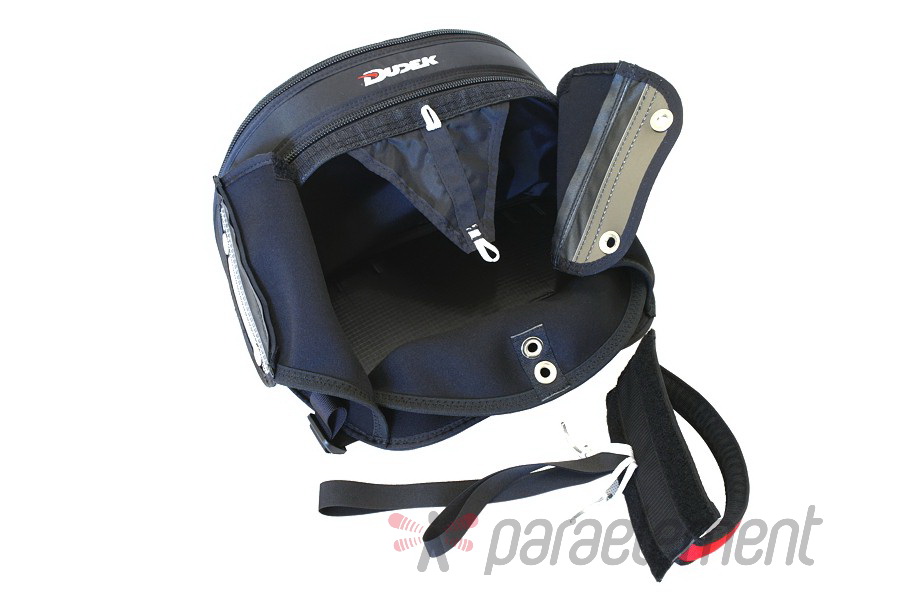 Taśmy, za pomocą których można przymocować frontkontener z kokpitem do uprzęży, są w komplecie.