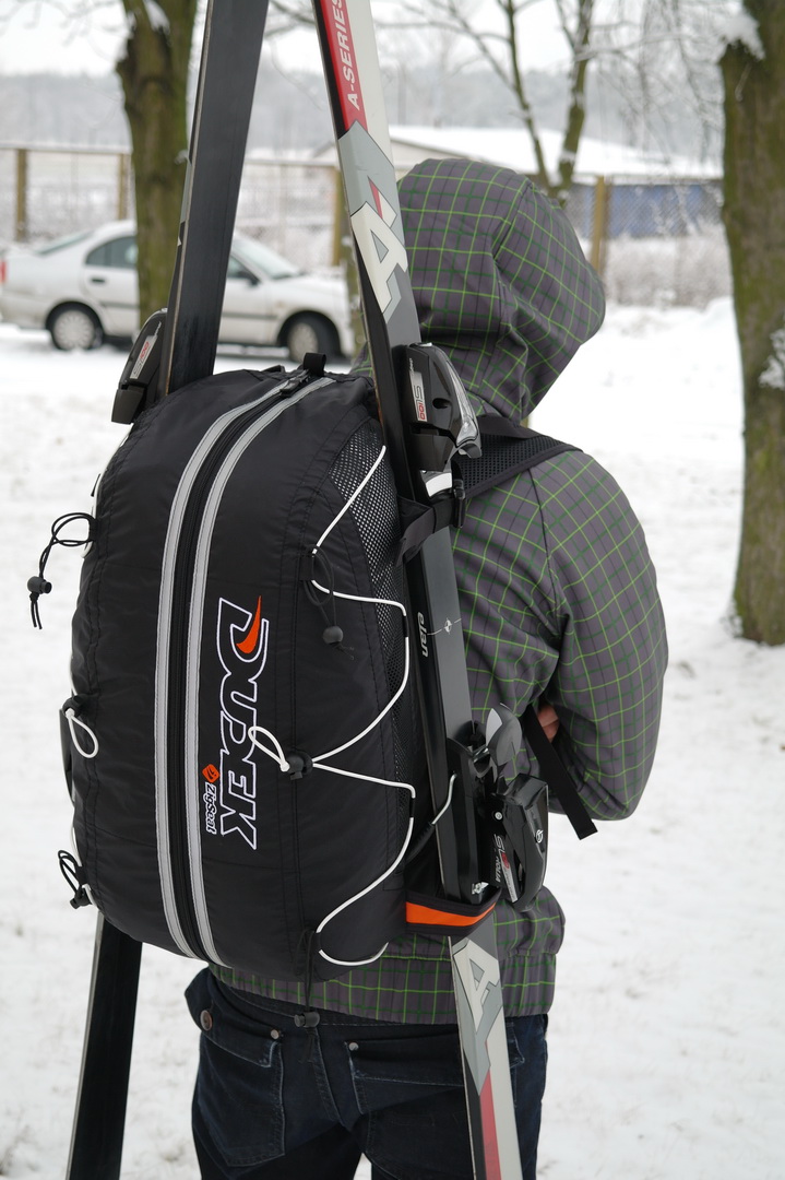 Jest to odwracalny uprzężo-plecak co znaczy, że po odwróceniu na lewą stronę staje się plecakiem, który pomieści skrzydło do speedridingu. Podczas jazdy na nartach i lotu plecak tworzy dużą kieszeń z tyłu uprzęży (pojemność plecaka to 43 litry).
